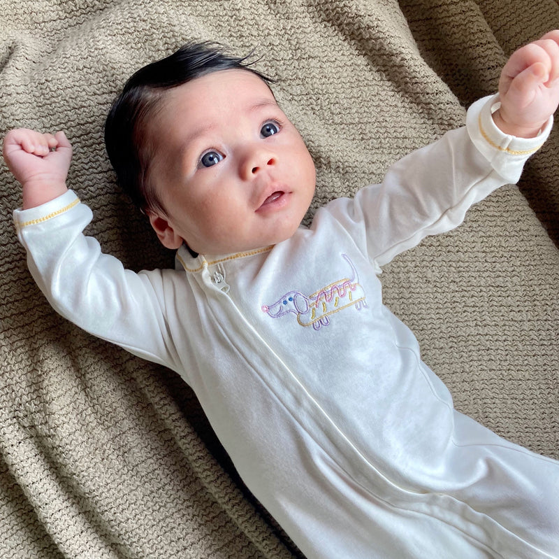 This baby suit is perfect! The designs are beautiful and functional. The perfect gift with the addition of beautiful personalization.